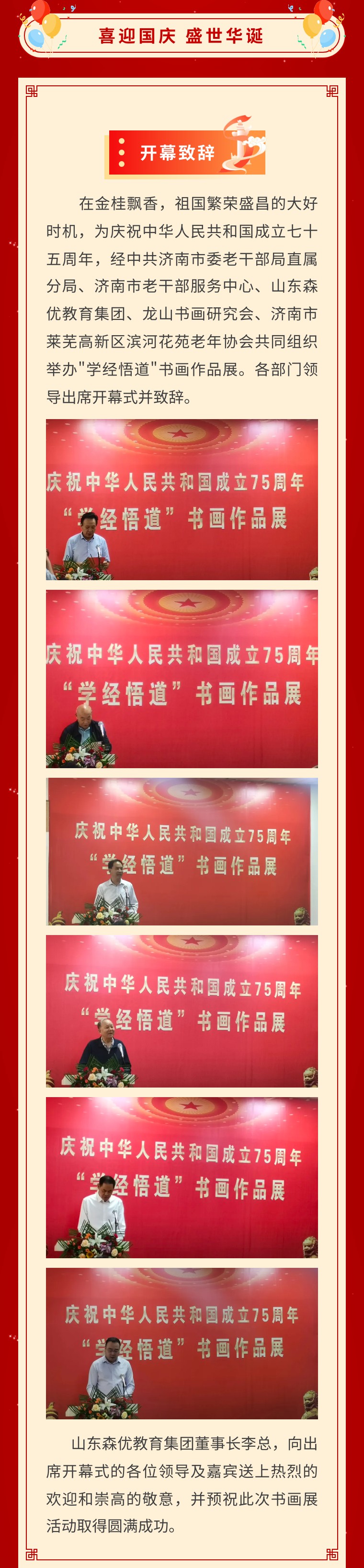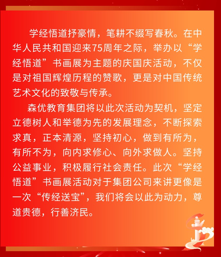 盛世华诞举国庆 文化璀璨亮泉城——山东森优教育集团为庆祝中华人民共和国成立75周年举办“学经悟道”书画展活动
