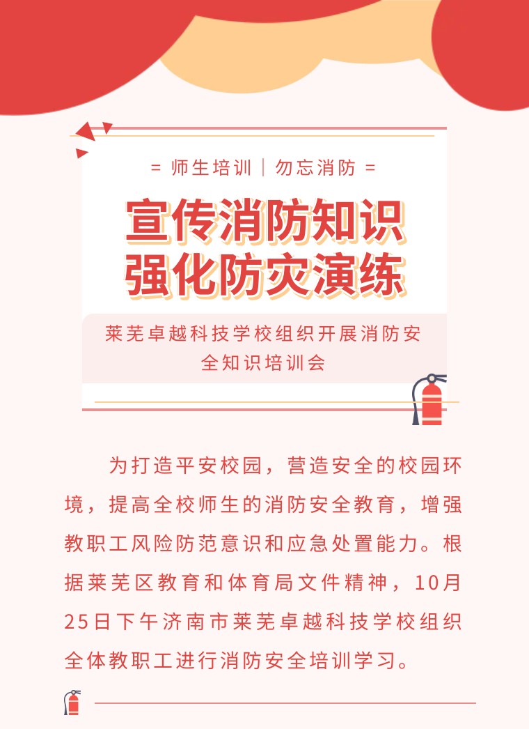 筑牢安全防线,建设平安校园。——济南市莱芜卓越科技学校组织开展消防安全知识培训会