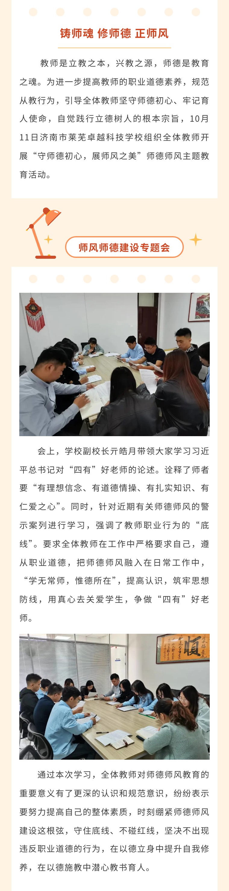 守师德初心,展师风之美———济南市莱芜卓越科技学校(森优教育集团单招/综评校区)召开师德师风专题会议