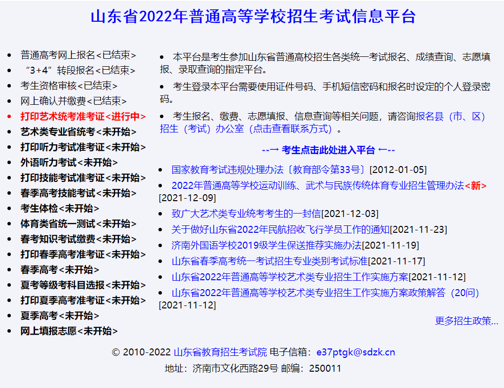 考生可以于2021年12月28日至2022年1月7日(不含元旦假期)每天9:00-18:00、1月8日8:00—10:00登录省教育招生考试院普通高等学校招生考试信息平台(http://wsbm.sdzk.cn)自行打印外语听力考试准考证,考生登录信息平台时除需要输入个人登录密码外,还需输入接收到的手机短信密码。准考证需使用A4幅面白色复印纸竖向打印。考生须按准考证上的要求参加考试。所有考生须在考试前14天开始进行健康管理信息采集,自12月25日起,请考生每天自觉进行体温测量、记录及健康状况监测,如实填写《健康管理信息采集表》。